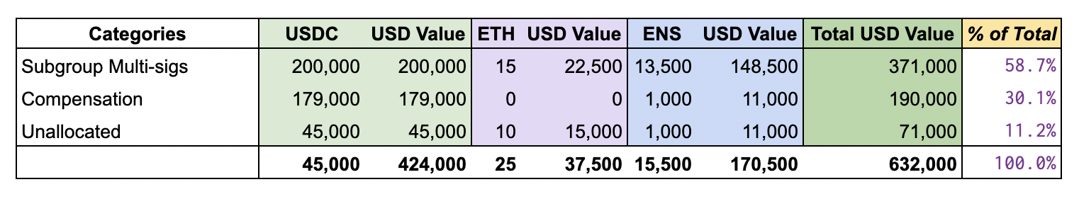 Funding in this category relates to compensation for DAO stewards and secretary.
